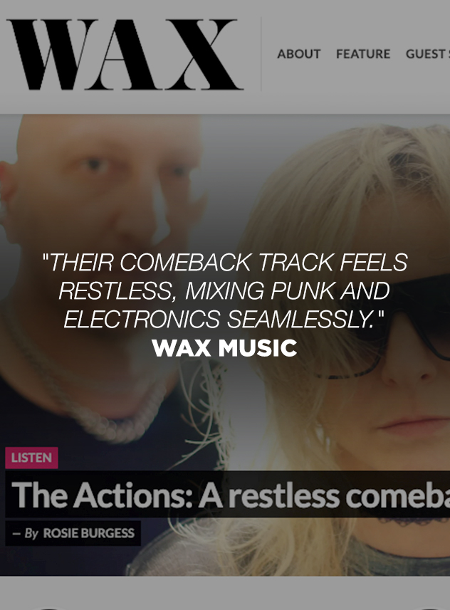 Blending dark electronics with driving rock, The Actions have... received press support from Clash Magazine and Nothing But Hope and Passion, alongside airplay from BBC Radio 6 Music’s Tom Robinson, Amazing Radio’s Simon Raymonde, Matt Baty, and John Kennedy on Radio X.